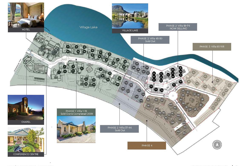 Set against the backdrop of the awe-inspiring Franschhoek mountains and vine-covered slopes, with its quaint cobbled streets, fountains, 4* Hotel, conference venue, chapel (ideal for weddings), this award-winning estate offers the discerning investor 2- bedroomed, 2-bathroom villas complete fully-fitted kitchen, a lounge/dining room and large private patio